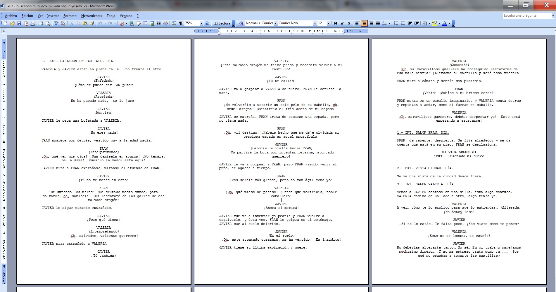 En el medievo 8 de enero de 20128 de enero de 2012 • tonyarodriguez Esta es de las escenas favoritas del público, y una de las mías también. El sueño de Fran. Queriendo que Javier quedara fatal y él mismo ser el caballero que salva a su damisela del cruel dragón. Adjunto guión y debajo escena. Comparte esto: Compartir en X (Se abre en una ventana nueva) X Compartir en Facebook (Se abre en una ventana nueva) Facebook Imprimir (Se abre en una ventana nueva) Imprimir Email a link to a friend (Se abre en una ventana nueva) Correo electrónico Me gusta Cargando... Relacionado